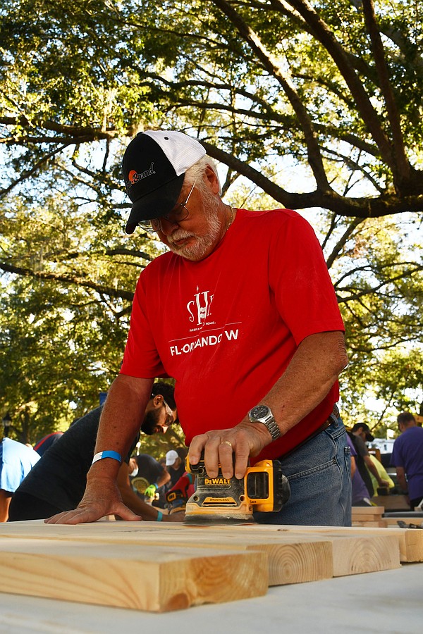 Sherri Duarte has participated in at least seven bunk bed builds for Sleep in Heavenly Peace, including the Windermere build Saturday, Oct. 18.