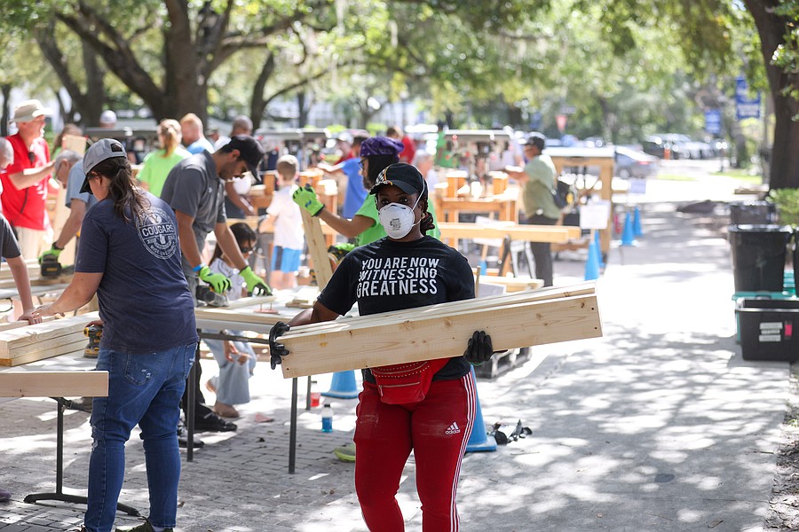 “I thought it was a really nice way to help the community in a very material way,” Carsten said. “It gives you a chance to play with power tools. Pretty much the whole community comes out. All my neighbors are out here.”