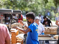 Horizon High School’s Colton Howell was volunteering as a member of the school’s Just Serve club, of which he is the secretary. He helped stain wood at the bunk bed build.