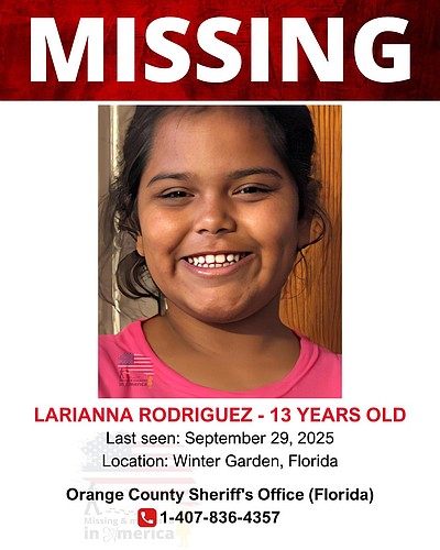 A13-year-old girl from Winter Garden has been missing since Sept. 29.