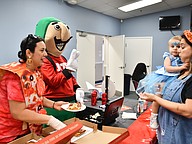 Effie Minitsios and JetMan from Jet’s Pizza served free pizza to all attendees.