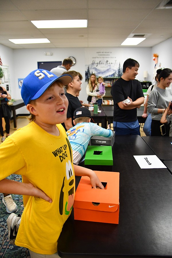 Brayden Smith blindly reached in boxes to guess what the hidden object was.