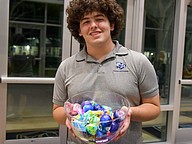 After kids finished the passport Alejandro Pedraglio greeted them with a prize. He’s a senior and wants to go to college for computer engineering.