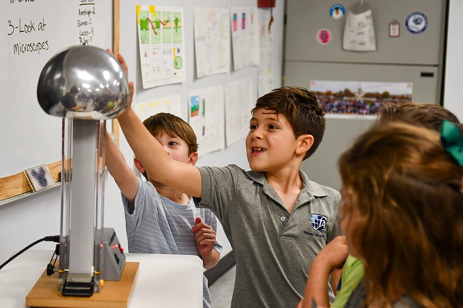 Luka Radakovich and Philip Rossin beamed with excitement as they touched the Van de Graaff generator. The machine sends a jolt of electricity and it’s comparable to when socks are rubbed on carpet.