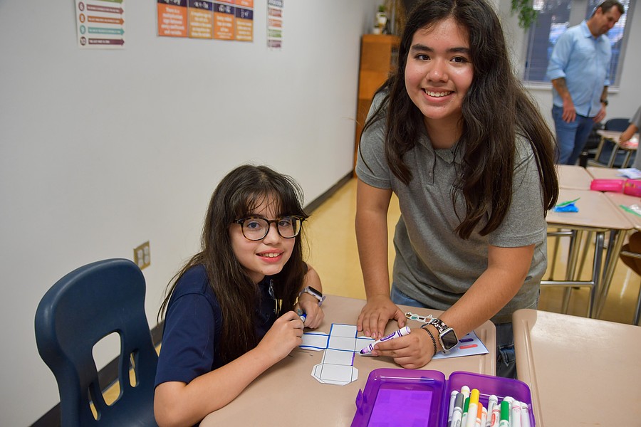 Sisters Sabrina and Cristina Beltran worked together to color paper which they later turned into a cube.