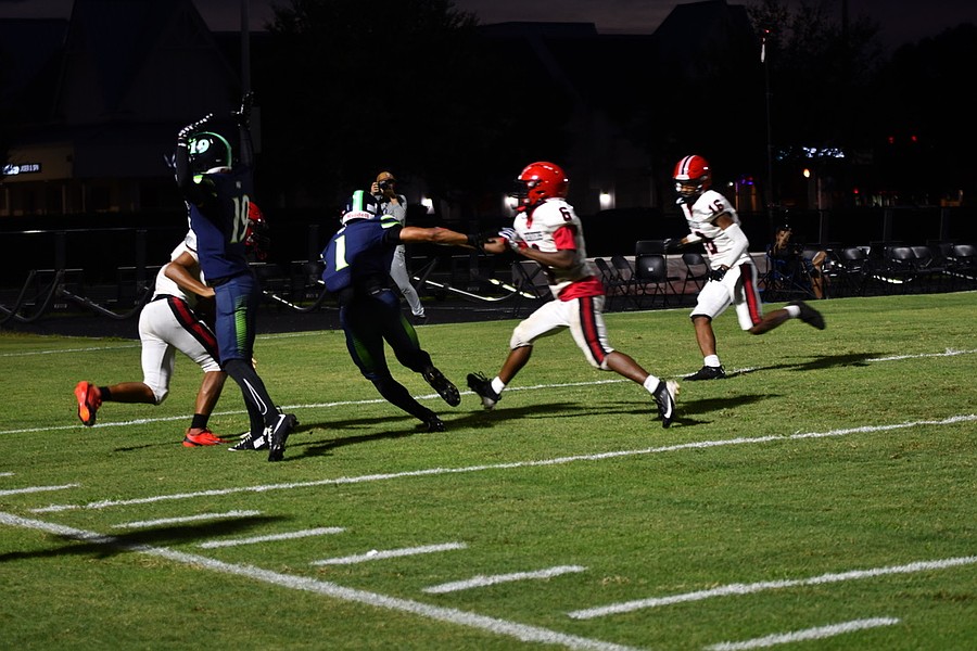 The score captured the flow of the game. Windermere received the ball to start off and instantly stopped Colonial on their first drive, a trend that continued throughout the night. The Wolverines wasted no time on their opening drive, scoring within seconds, and two minutes later they found the end zone once again.