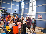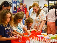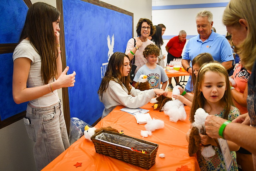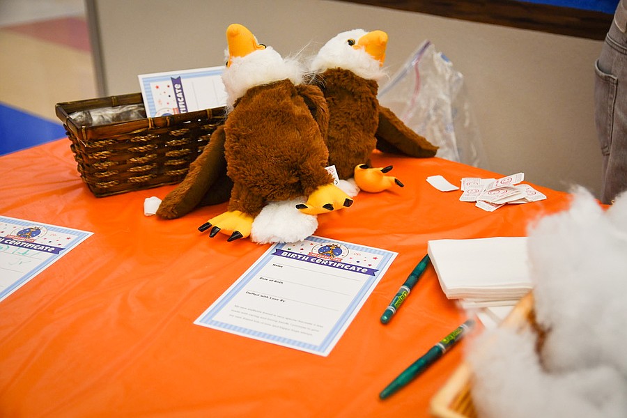 Smiles spread throughout the school as children made stuffed eagles and decorated cookies while waiting for the event hosted by the Parent Teacher Organization to commence.