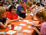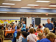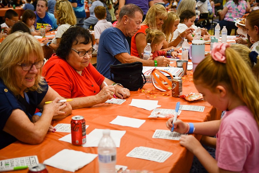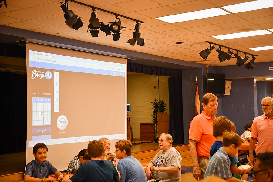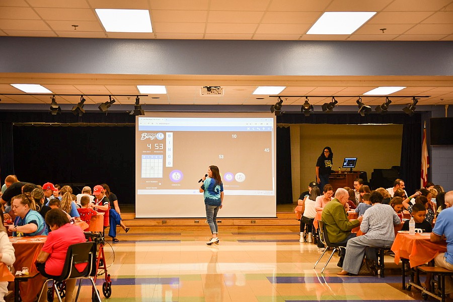 Families sat around the cafeteria tables and filled out their bingo cards are numbers were called.