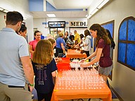 Attendees checked in at the front desk to retrieve their tickets before going to the activities.