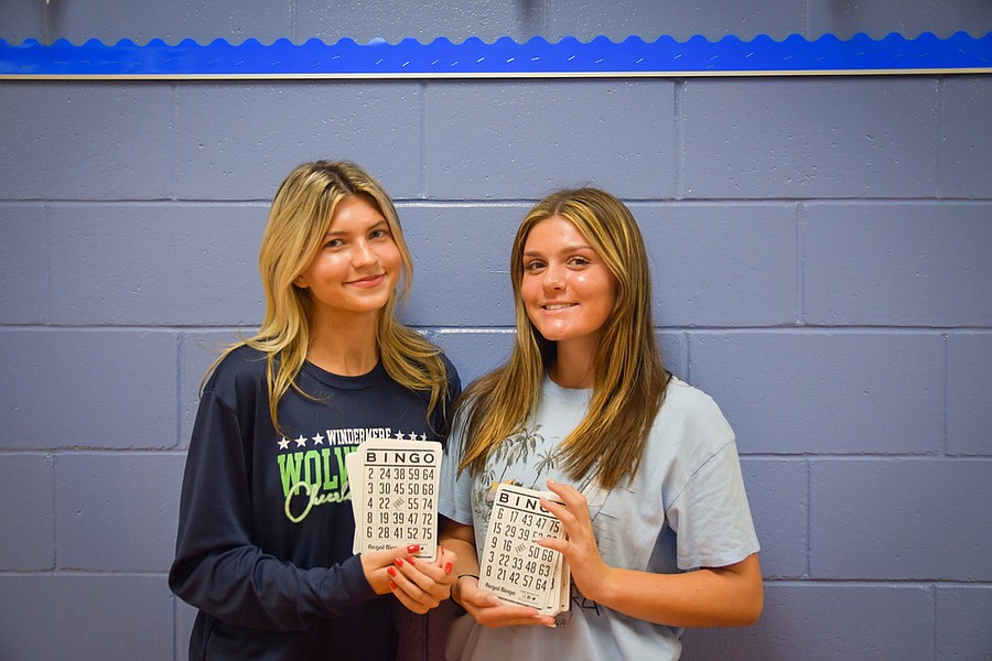Windermere High School students, Reese Boylan and Cayden Minner, volunteered to hand out bingo cards to the large crowd of attendees.