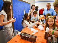 Under the stairwell, three stations were set up with different activities for students to do including sand making, eagle stuffing and cookies.