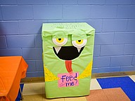 The front of the cafeteria displayed a large bingo card and made it easy to follow along.
