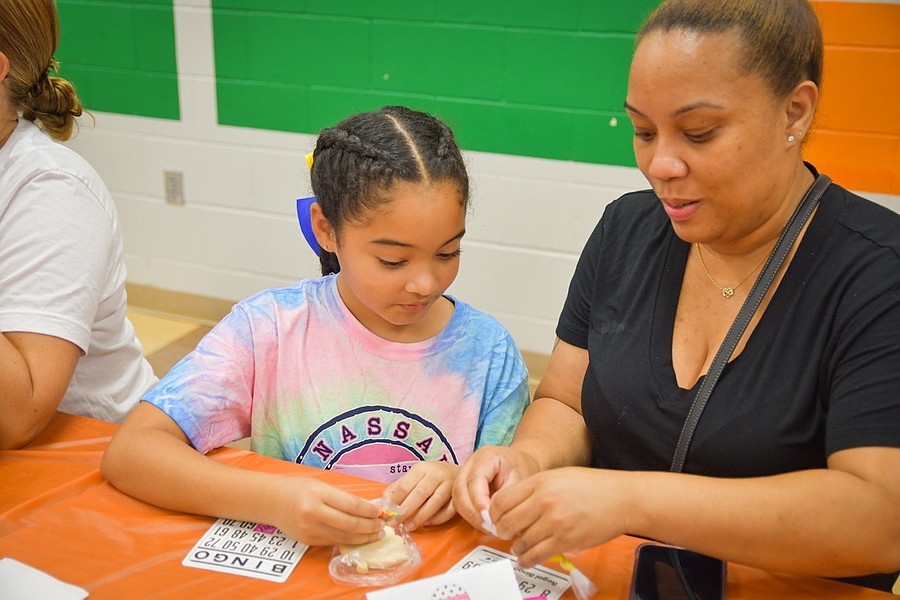Participants were greeted by their school mascot, an eagle, and they had the opportunity to take photos with it before heading into the cafeteria for bingo. Those who came to the event last year said the bingo and the environment was their favorite part.