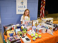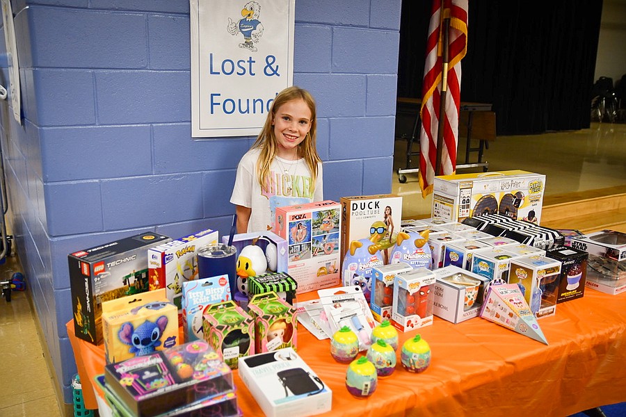 Fifth grader Mary Ruoff helped volunteer at the prize station for bingo winners.
