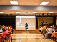 Attendees listened to Kathleen Ruff, a fourth grade teacher at Sunset Park Elementary, give directions before starting bingo.