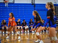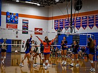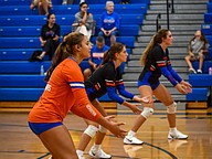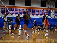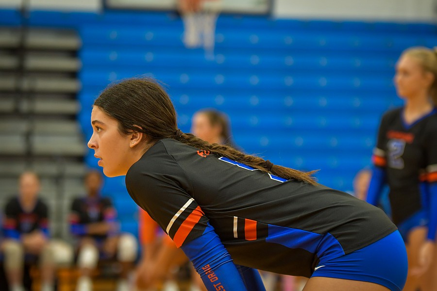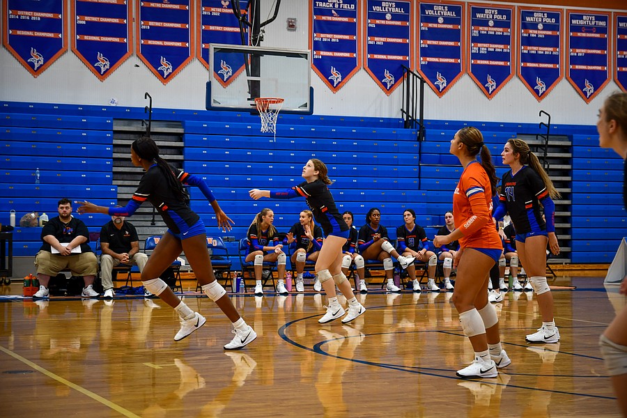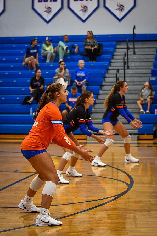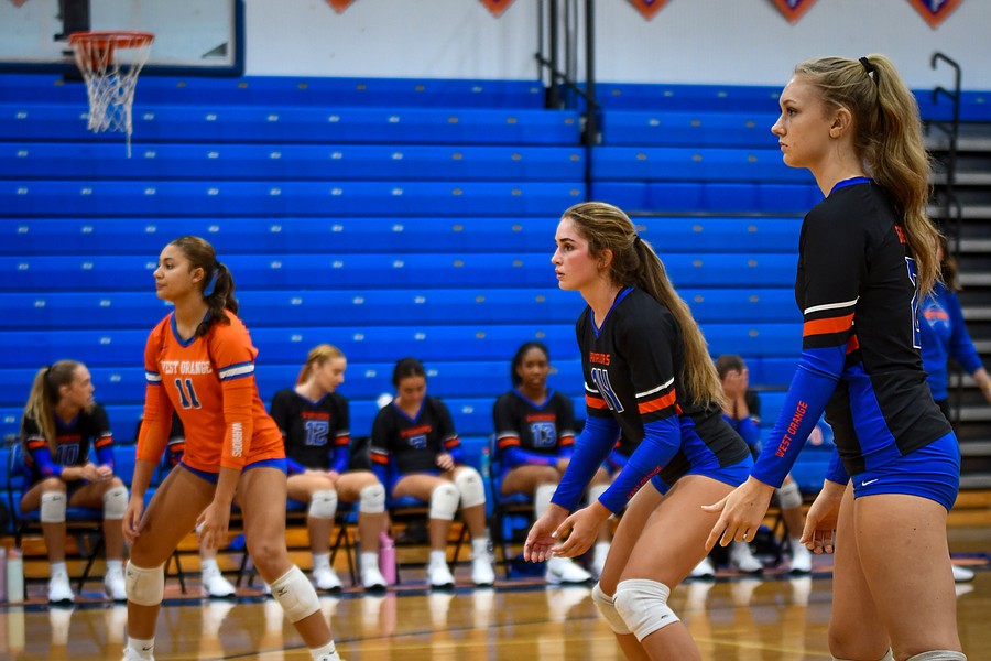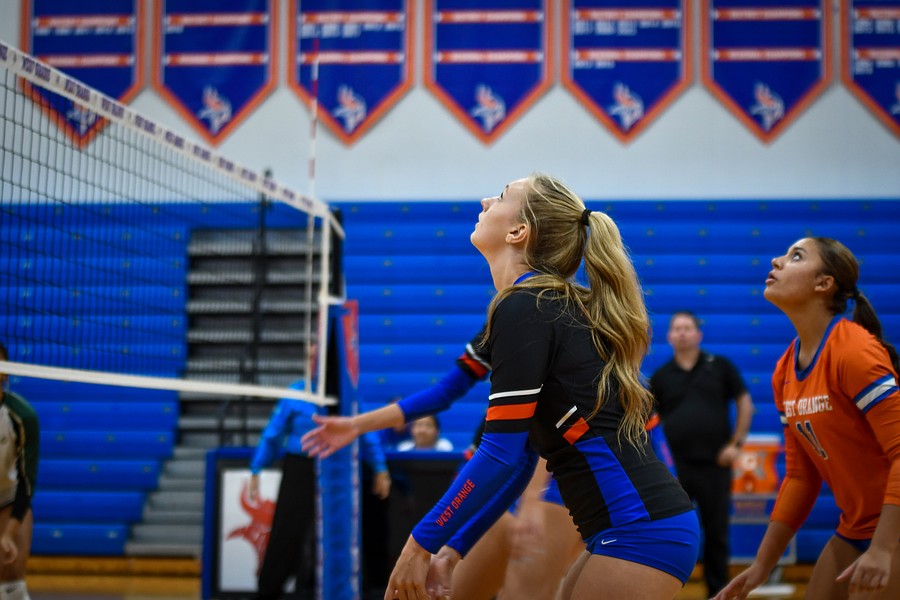 Keep the eye on the ball. West Orange lined up in serve receive.