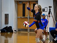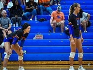 Alexa Valentine and Cassidy Flakes waited patiently for the serve before they ran to their positions.