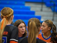First year head coach Elyssa Stimmell talked to the team during a timeout.