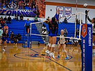 Kettie Maroth hit the ball at match point in the fourth set and won the Warriors the game.