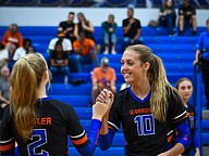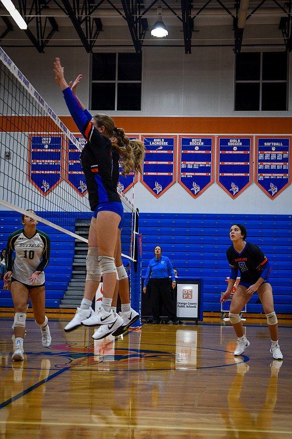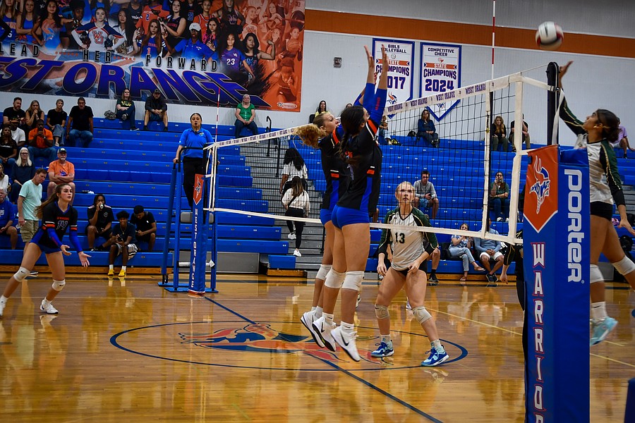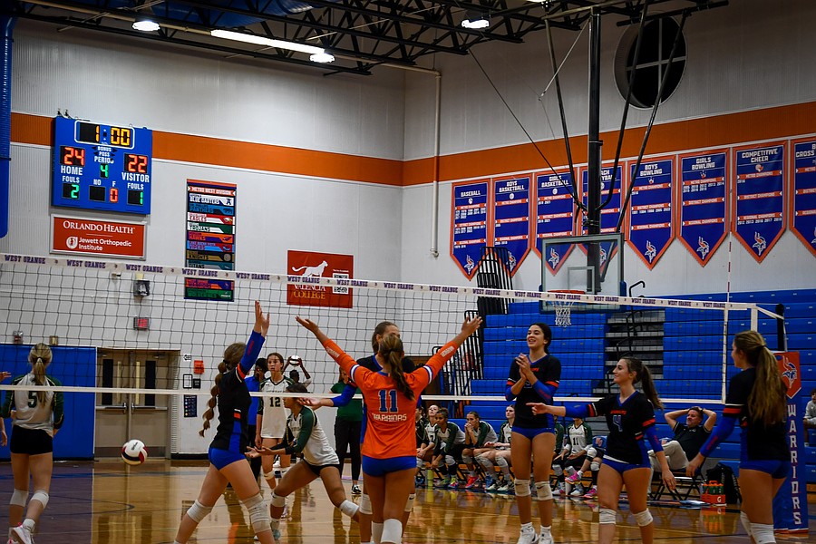 The Warriors’ outside hitter Kettie Maroth leapt up to hit the ball and nailed down a kill. She finished the match and handed West Orange the win over The Villages Charter in four sets. The team advanced its record to 5-5.