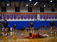 The Warriors’ libero Avery Valentine dove for a ball but came just short and The Villages won the point.
