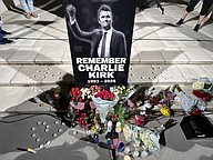Attendees left flowers and items at the memorial of Charlie Kirk. Among the gifts were two cups of Mint Majesty tea with two honey — Kirk’s famous Starbucks order.