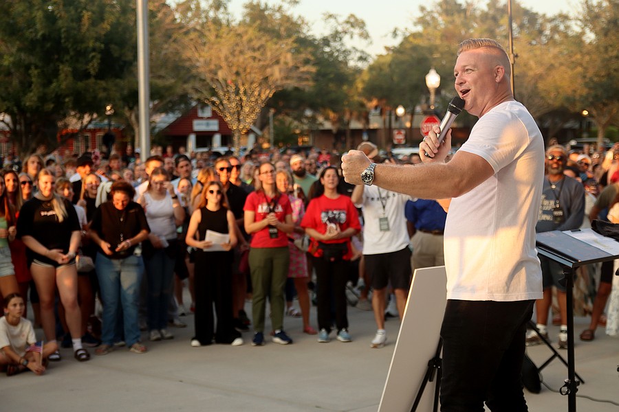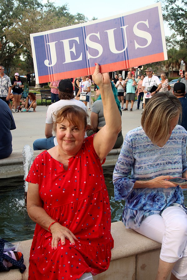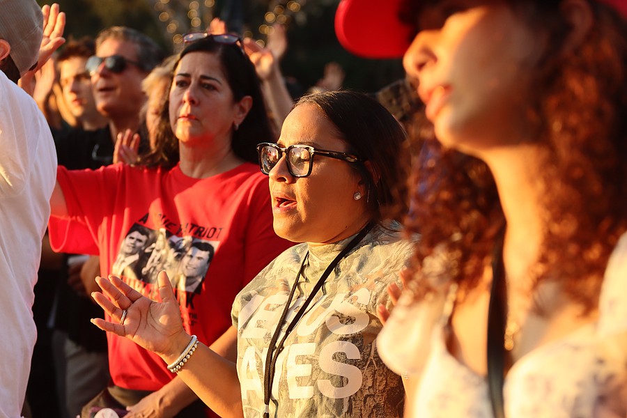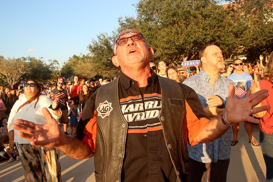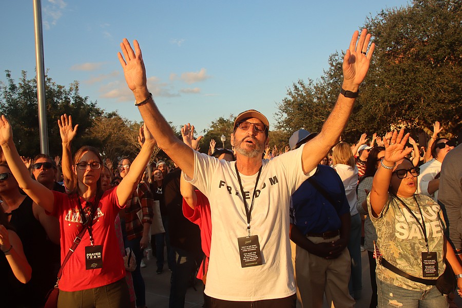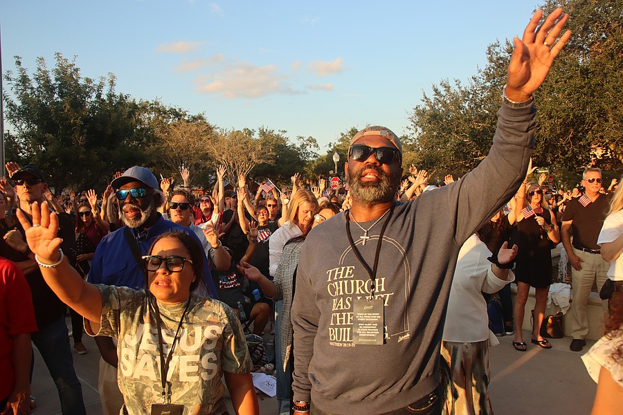 Attendees packed the area in front of City Hall to participate in worship led by musicians from Glad Tidings Church. Speakers included Pastor Tyler Howell, of Glad Tidings; Scottie Cahill, of First Presbyterian Church of Orlando; Erin Huntley, chair of the Orange County Republican Party; Archie Simon, of Northwest Church; social media influencer Janae Kinne, of The Patriot Sisters; Jocelyn Sorchy, who is starting a Turning Point USA chapter at Liberty Academy; international minister Steven Halford; Tamryn Foley, of CityServe International; and Dr. Charles Cooper, of IronMen of God.