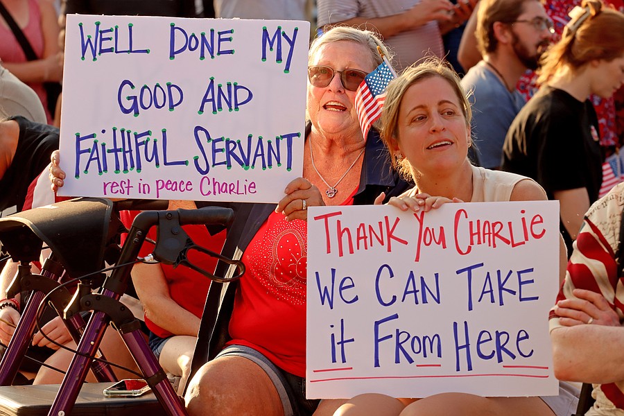 Thousands of West Orange residents honored the life and legacy of Charlie Kirk at a vigil held Saturday, Sept. 20, on the steps of Winter Garden City Hall.