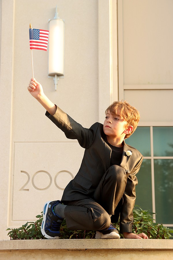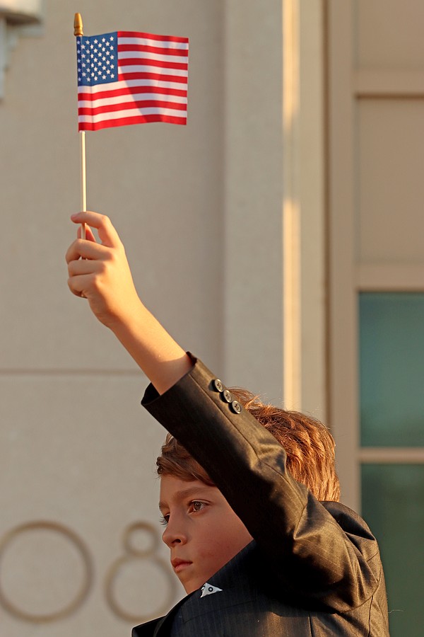 Dressed in a full suit and sneakers, Matthew Foley waved his American flag with pride.