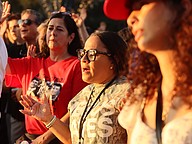 Rebekah Fisher, of Glad Tidings Church, led worship at the vigil.