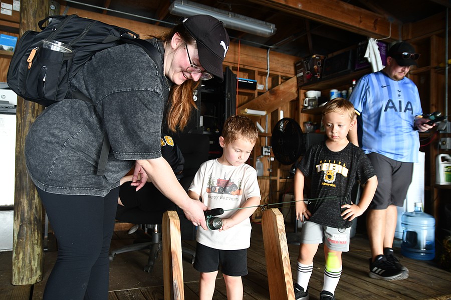 Amber Shaw helped her 3-year-old son, Daniel Shaw, hold the rod.