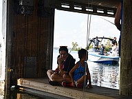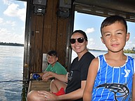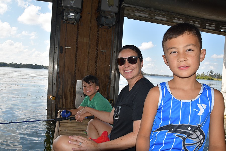 Koa, Amanda and Kieran Klinski sat while fishing.