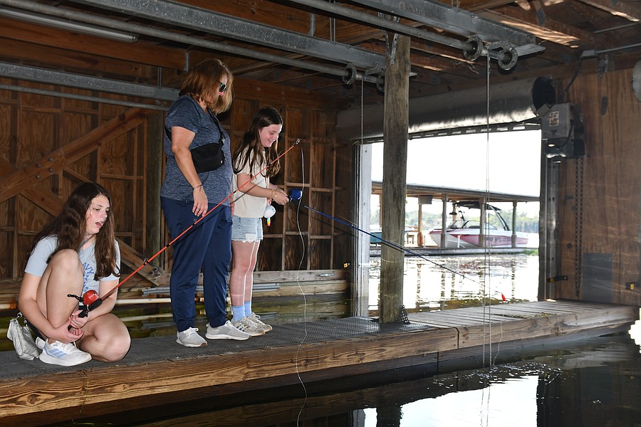 Reagan, Jennifer and Riley McCollum smiled while fishing the shoreline.