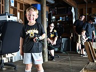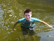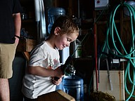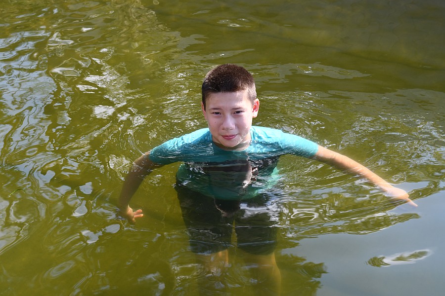 Daniel Shaw showed excitement as fish bit his lure. This was his first time fishing.