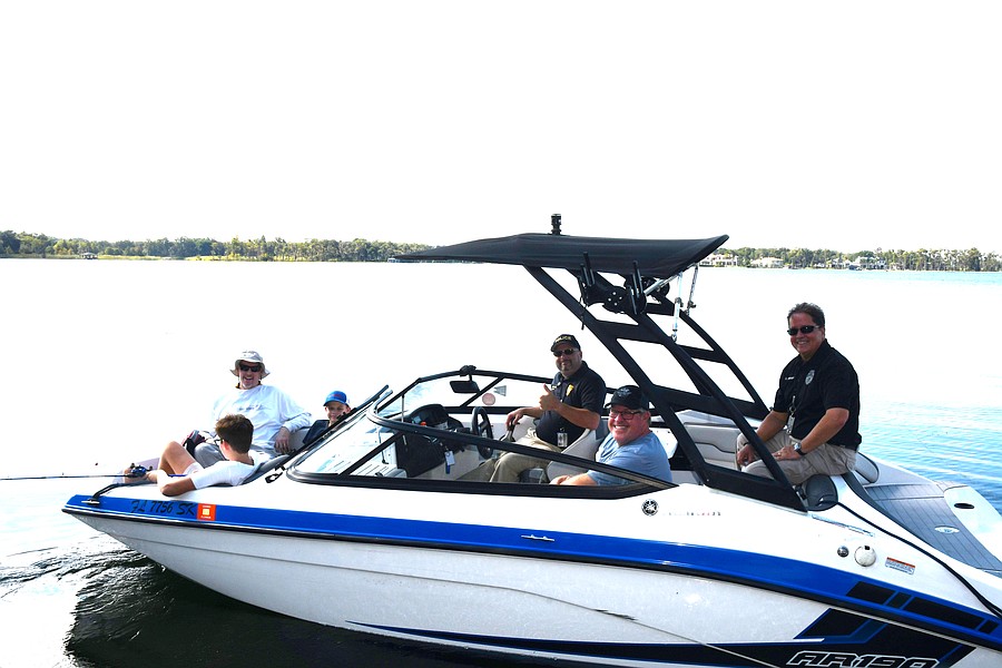 Officers and attendees were heading out to fish the Lake Butler on the boat.