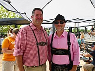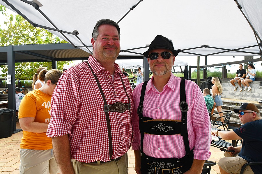 Chad Alday and Michael Coulter attended the event in full Oktoberfest attire, with lederhosen on.