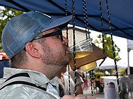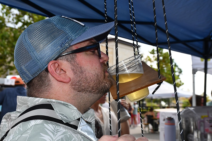Andrew Szydlik played beer puppeteer during the event, with the goal of drinking the whole cup of beer without using his hands.