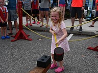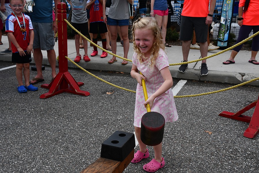 Some children loved the high striker game but struggled to lift the heavy hammer.