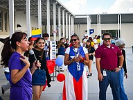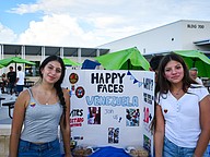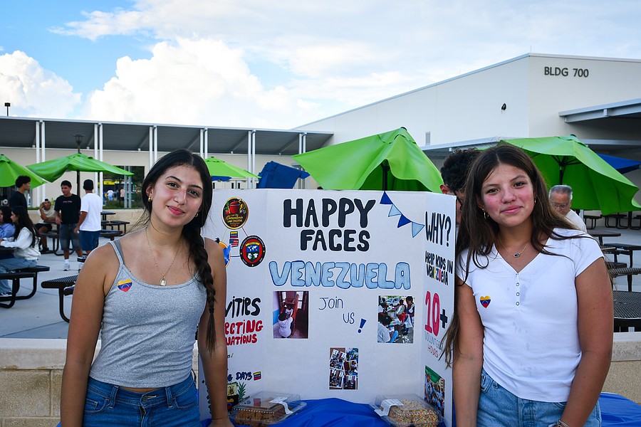Antonella Anka and Samantha Avendano stood with their organizations poster. They started it this year and send supplies to help people in Venezuela.