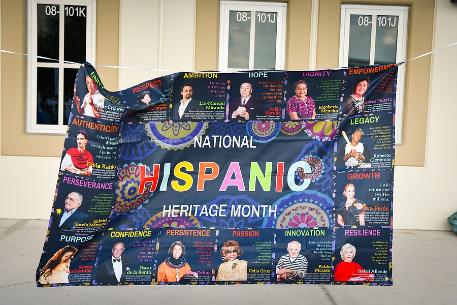 A flag was hung with figures who represented characteristics from Hispanic Heritage month that spans from Sept. 25 to Oct. 15.