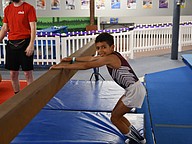 Some kids showed off their skills by doing back handsprings and back tucks on and off the trampolines.