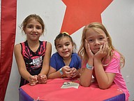 Adelina Shika, Leah Azlin and Estella Sofia patiently waited their turn to jump on the trampoline.