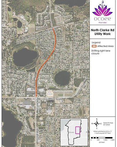 From 10 a.m. to 2 p.m., the right lane on North Clarke Road, from A D Mims Road to East Silver Star Road, will be closed for utility maintenance.