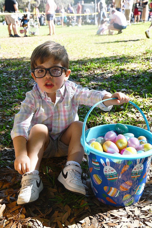 Jennifer and Luis Perez-Mena brought their son, Luca, to participate in the egg hunt. He found a gold ticket and won a new tricycle.