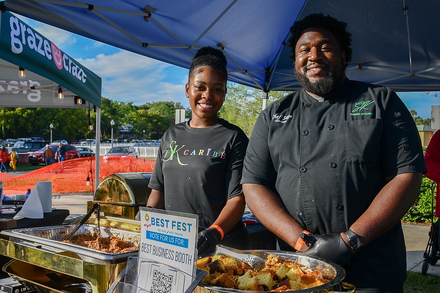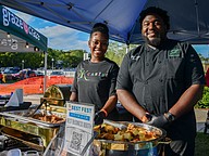 age’s Kitchen’s chef Sage Telfort, right, handed out his BBQ honey jerk chicken, truffle 5-cheesy mac, honey butter cornbread and deviled eggs. His catering service is focused around Caribbean heritage.