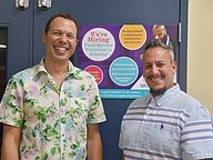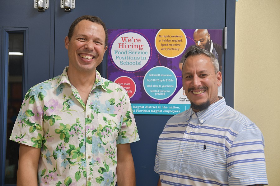 Jason Akin and Gasper Bommarito helped serve snacks with positive attitudes and smiles across their faces.
