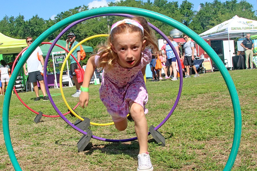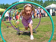 Riley Kolbjornsen, 6, made quick work of this hula-hoop maze.