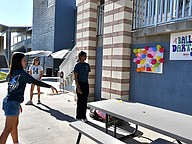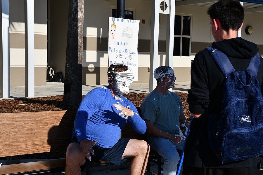 Bridgewater Middle’s students were excited to throw shaving cream in their teachers’ faces. Every 30 minutes, a different pair of teachers rotated to become the target.