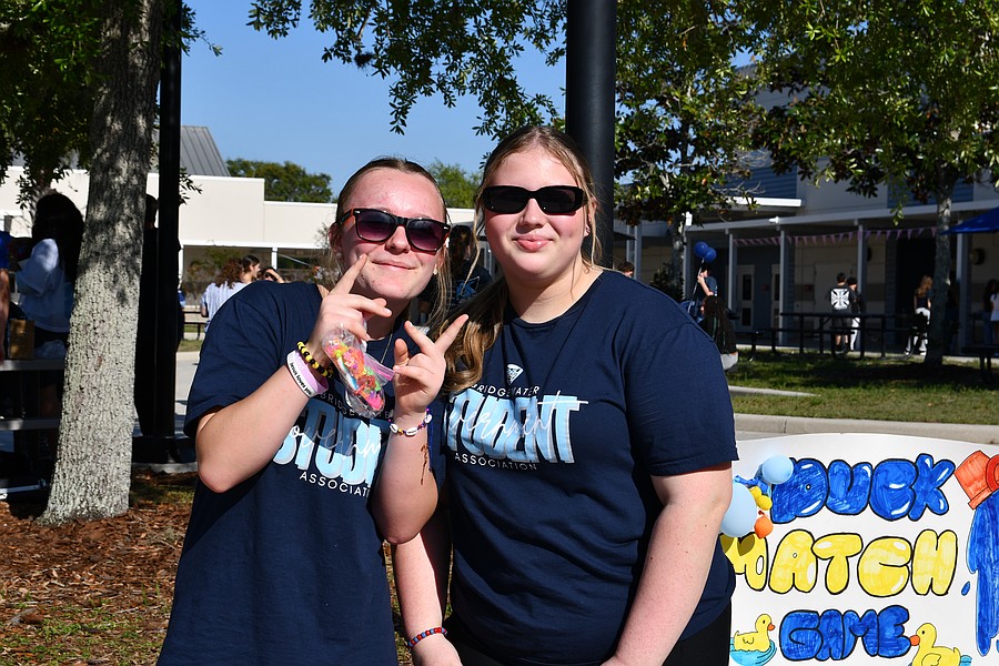 Abigail Thompson and Polina Tovpeko helped visitors catch rubber ducks in a pool.