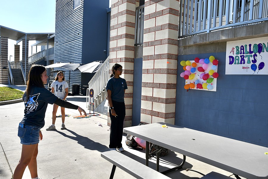 Sophia Matson pinpointed a balloon on the wall and practiced her dart throwing skills.